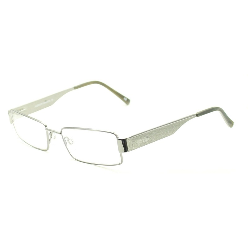 JAEGER Full Rim Frames - 100% Authentic - LONDON 15 C2 Polished gunmetal frames with matching patterned metal arms inlaid with Jaeger London Gloss transparent dark grey acetate end covers Precision spring hinges and adjustable nose pads for a comfort fit N