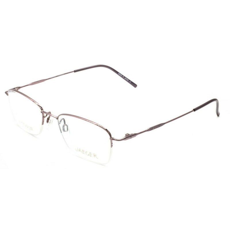 JAEGER Half Rim Frames - 100% Authentic - Mod. 320 C.46Polished grape titanium frames and arms with Jaeger logosGloss pearl purple acetate arm end coversAdjustable nose pads for a comfort fitNever been wornLens Width = 48mmFrame Height = 33mmBridge = 18mmT