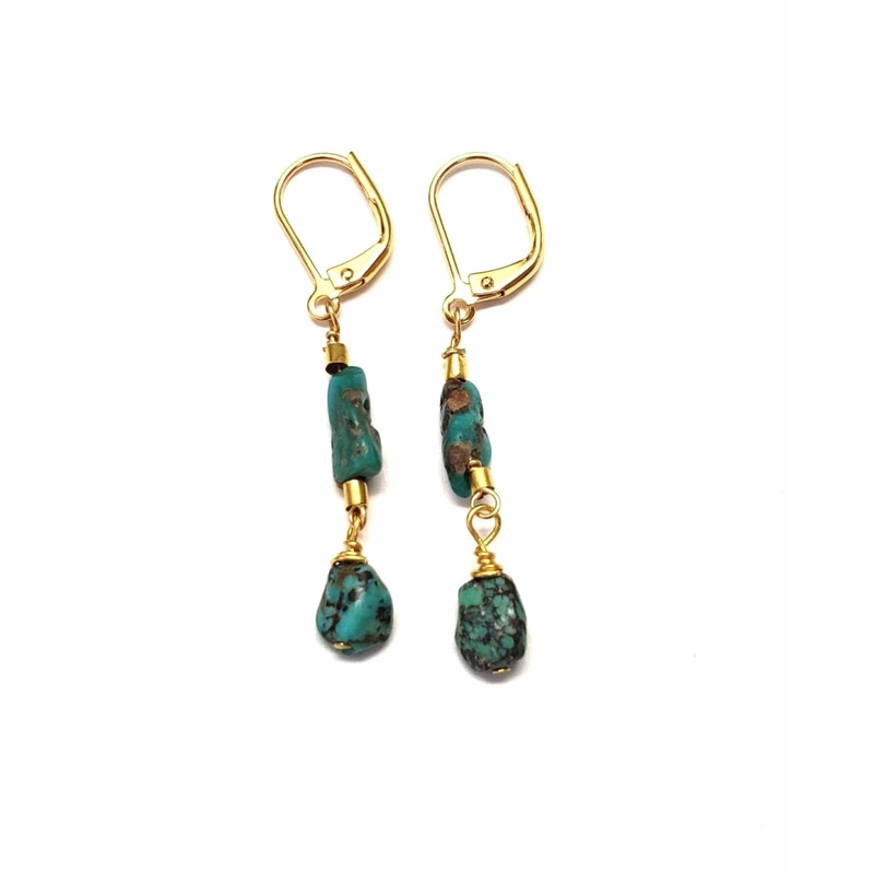 Turquoise is always priceless and a classic. Wear our Jala earrings for a timeless classic look. Approx. length- 1.5". Set in gold-tone mixed metal. Lever back closure for pierced ears.