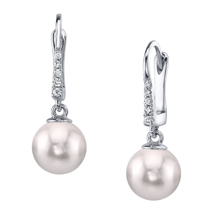 Each pair of these exquisite earrings features stunning AAA quality white saltwater Japanese Akoya pearls. The pearls boast a mirror-like luster along with beautiful overtones, creating a timeless elegance that you'll love. Accented with sparkling 0.10ct S
