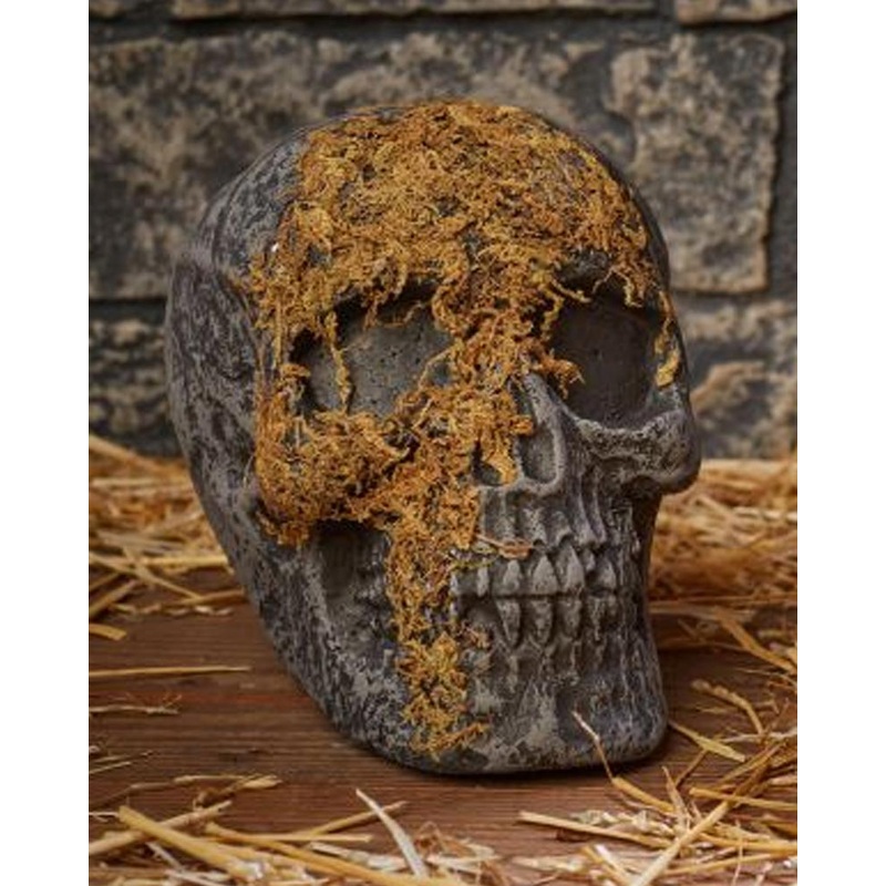 Item Includes:Skull prop.Old boy.Age your Haunted House or graveyard with this fantastic Jaw Moss Covered Skull. The prop skull comes in an aged grey colour with skull detail and features attached faux moss detail to make it look ages old and like it's bee