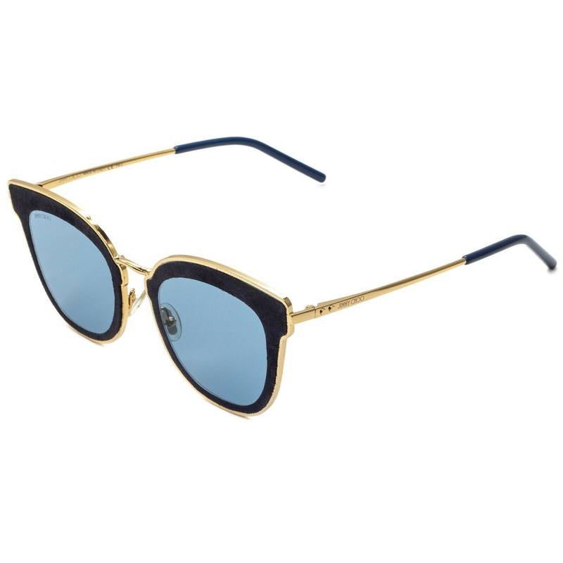 JIMMY CHOO NILE/S LKSA9 Sunglasses -100% AuthenticPolished gold metal frames and arms with glitter blue insertsGloss blue acetate arm endsBlue tinted gradient lensesBrand newLens Width = 63mmFrame Height = 54mmBridge = 12mmTemple = 140mmMeasures 142mm acro
