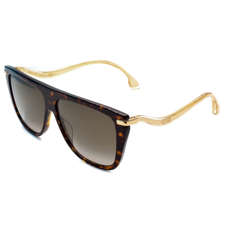 JIMMY CHOO SUVI/S 086HA Full Rim Sunglasses - 100% AuthenticGloss havana dark brown acetate framesPolished gold metal curved arms with transparent acetate coversBrown tinted lensesBrand newLens Width = 58mmFrame Height = 55mmBridge = 13mmArm Length (Temple