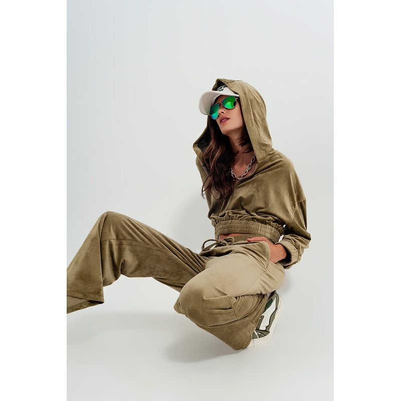 Separate straight leg joggers that you can combine with our Zip Through Hoodie in Green for a full set, these pants have a soft, velvety feel. These lightweight joggers boast of side pockets, straight legs, and a drawstring waist for your comfort. Wear the