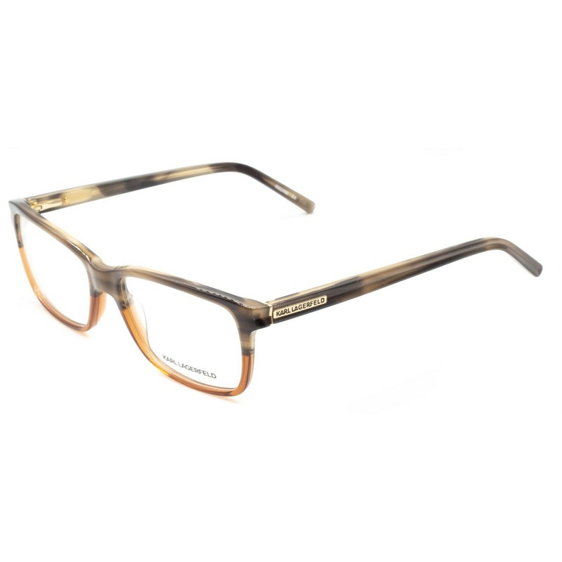 KARL LAGERFELD Full Rim Frames - 100% Authentic - KL 01 25663907Gloss transparent striped gradient brown acetate frames and grooved armsNever been wornLens Width = 54mm Frame Height = 40.5mmBridge = 16mmTemple (Arm Length) = 135mmMeasures 139mm across the