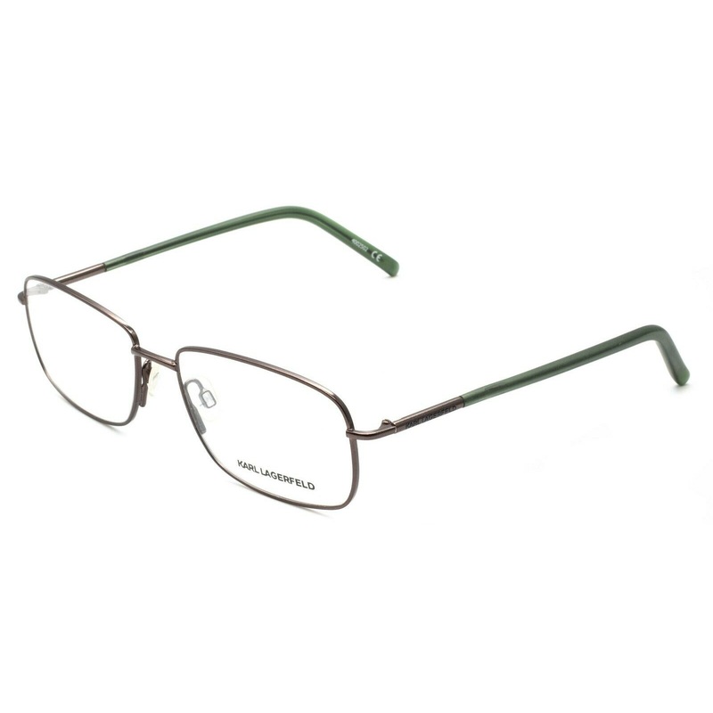 KARL LAGERFELD Full Rim Frames - 100% Authentic - KL 07 25663976Satin brown metal framesMatte transparent dark green armsAdjustable nose pads for a comfort fitNever been wornLens Width = 55mm Frame Height = 38mmBridge = 16mmTemple (Arm Length) = 140mmMeasu