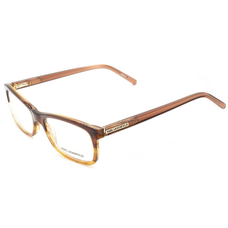 KARL LAGERFELD Full Rim Frames - 100% Authentic - KL 18 25664126 52mmGloss transparent striped brown acetate frames and grooved armsPrecision spring hinges for a comfort fitNever been wornLens Width = 52mm Frame Height = 37.5mmBridge = 16mmTemple (Arm Leng