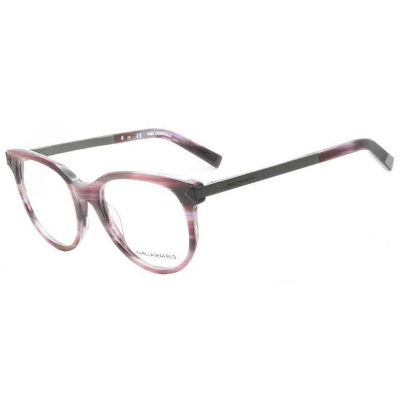 KARL LAGERFELD Full Rim Frames - 100% Authentic - KL 881 047 Gloss marble purple acetate frames and arm ends Satin grey metal sides inlaid with KL logos Precision spring hinges for a comfort fit Never been worn Lens Width = 52mm Frame Height = 50.5mm Bridg