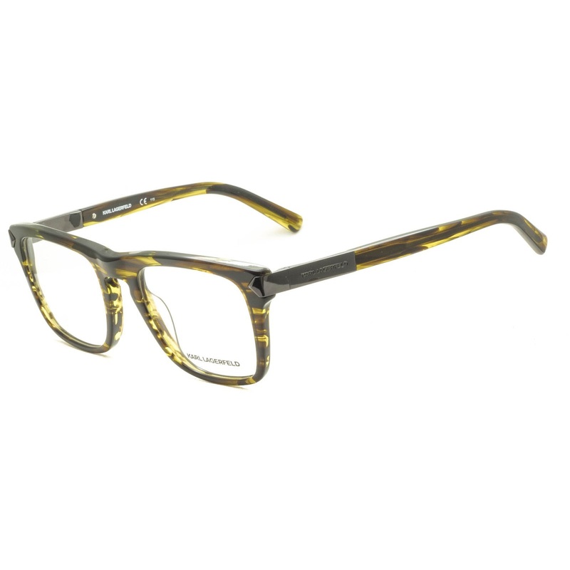 KARL LAGERFELD Full Rim Frames - 100% Authentic - KL 883 042 Gloss marble khaki acetate frames and arms with KL logos on dark gunmetal hinges Precision spring hinges for a comfort fit Never been worn Lens Width = 51mm Frame Height = 47mm Bridge = 21mm Temp