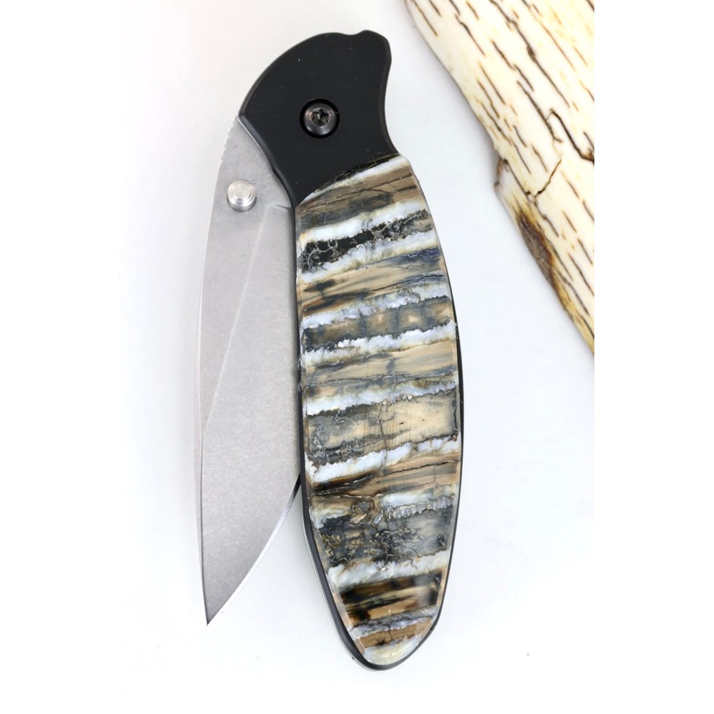 Kershaw Scallion 1620SWBLK Stonewash Blade with Woolly Mammoth Tooth Scale Handle KERSHAW SCALLION POCKETKNIFE: A right-sized knife for right now. Made in the USA, the Scallion is a perfect knife that makes a great pocket or purse carry, ready to handle ju