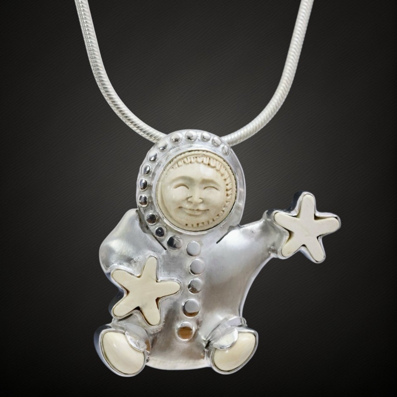 Fossil Mammoth Ivory &.925 Sterling SilverSize - 1 9/16" length x 1 7/16" widthCan be used as either a pendant or a brooch. Each Ivory pin is named after a city or town in Alaska and represents ancient activities familiar in native Alaskan cultures.Woolly