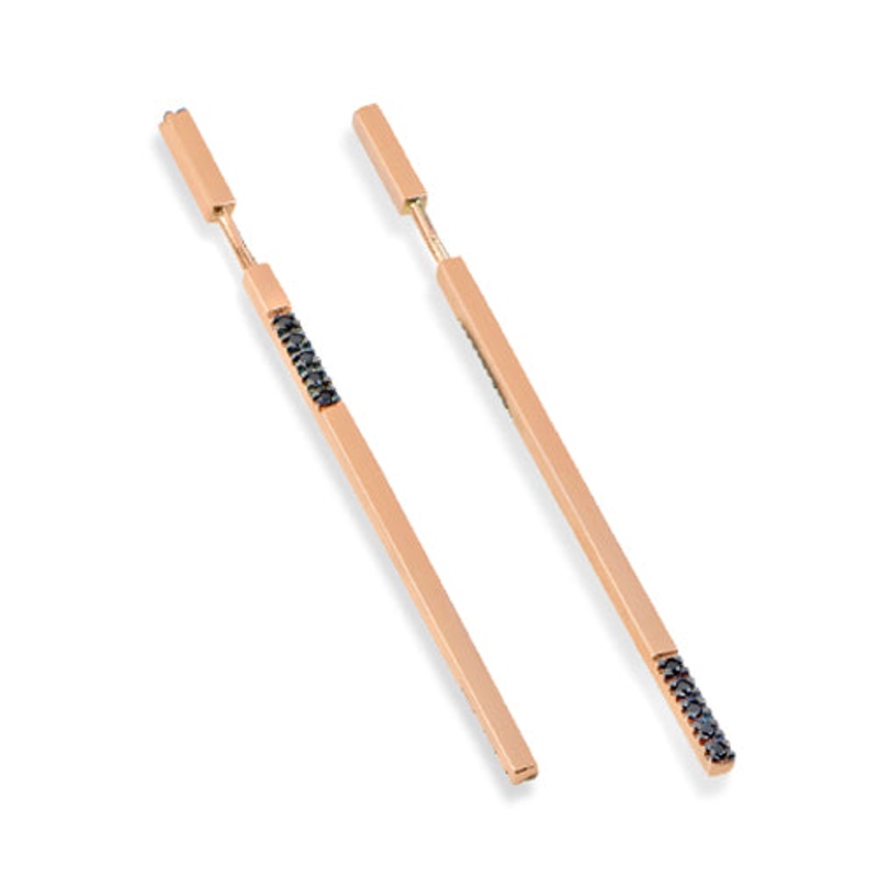 The Klystron Gallery Earrings are set in contemporary 9ct rose gold featuring black spinels.Modelled on the amazing structure itself, the longest,modern building in the world.These playful earrings are a must have for the wardrobe of themodern woman of tod