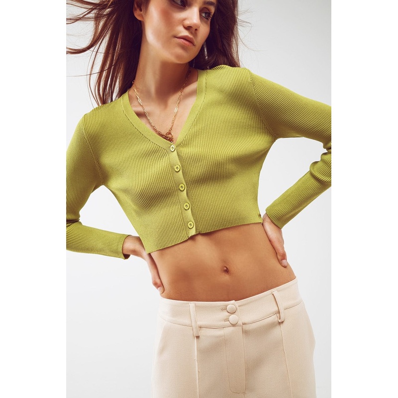 Indulge in the timeless charm of our Knitted Cropped Cardigan in Green. Layer it over your favorite outfits and experience the perfect blend of comfort and fashion. Upgrade your wardrobe with this must-have piece today.