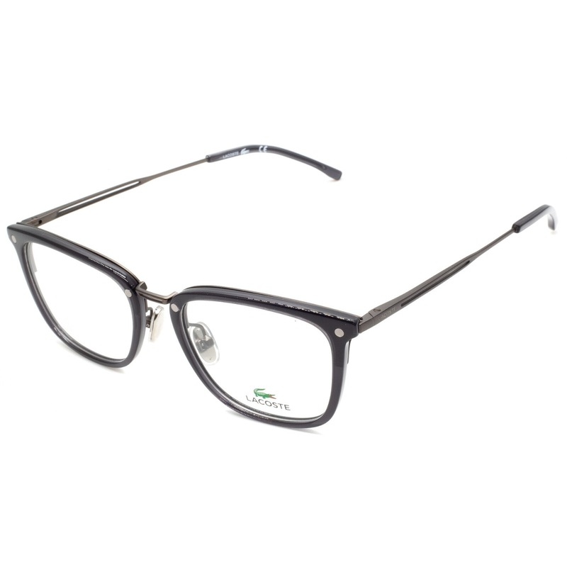 LACOSTE Full Rim Frames - 100% Authentic - L2874PC 035 Gloss black acetate frames and arm ends Satin dark gunmetal bridge and arms Adjustable nose pads for a comfort fit Brand new - Never been worn Lens Width = 53mm Frame Height = 45.5mm Bridge = 19mm Temp