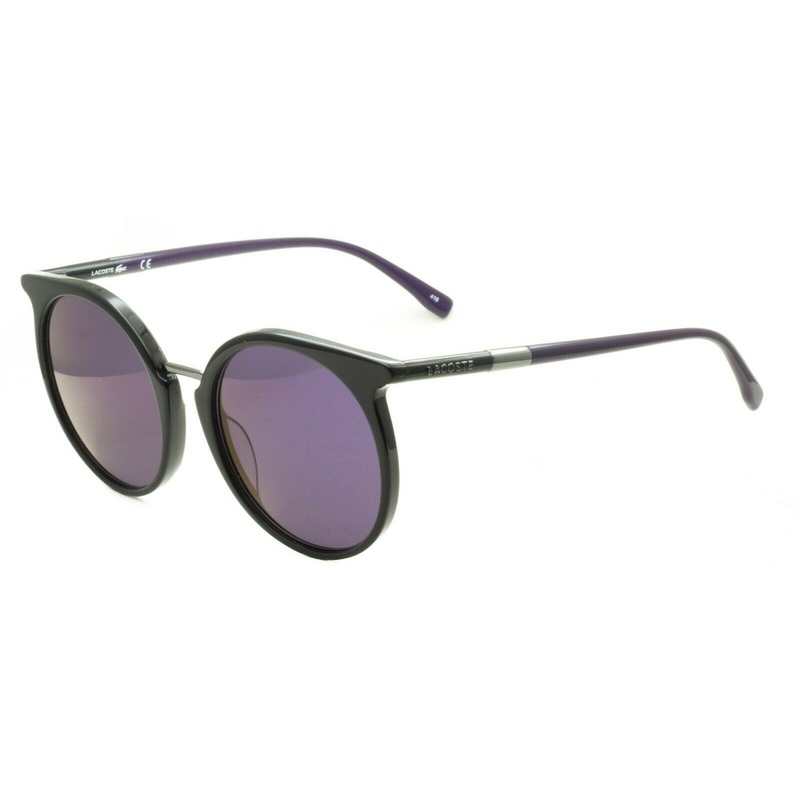 LACOSTE Full Rim Sunglasses -100% Authentic - L849S 001Gloss black acetate frames and sidesGloss aubergine acetate arms with polished dark gunmetal insertsPurple tinted mirror lensesBrand newLens Width = 53mmFrame Height = 55mmBridge = 19mmTemple = 140mmSU