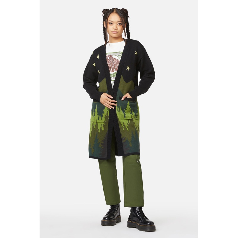 Intarsia Boarder Cardigan-Features 'landscape' Boarder Artwork-Has Ribbed Neckline And Cuffs-Below Knee Length Cut-Made From Cotton-Available In MultiProduct Code: DGFX186