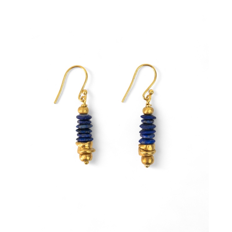 The Lapis Lazuli Disc Earrings feature unique carved lapis discs, they measure 35mm long, which dangle gracefully just below the earlobes.Unique Lapis Lazuli Gemstones: The lapis lazuli gemstones 5mm or 7mm (pictred) boast an intense, matte royal blue hue,
