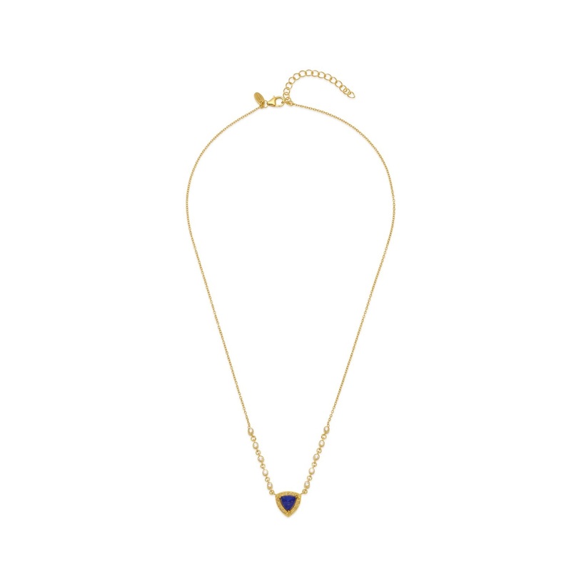 TheLapis Lazuli Pyramid Charm Necklaceis made with 18ct yellow gold plated vermeil on sterling silver using 3 microns of gold to ensure long lasting wear. It features natural bezel set, ethically sourced white zircons, a grey diamond pave andlapislazuli.Pa