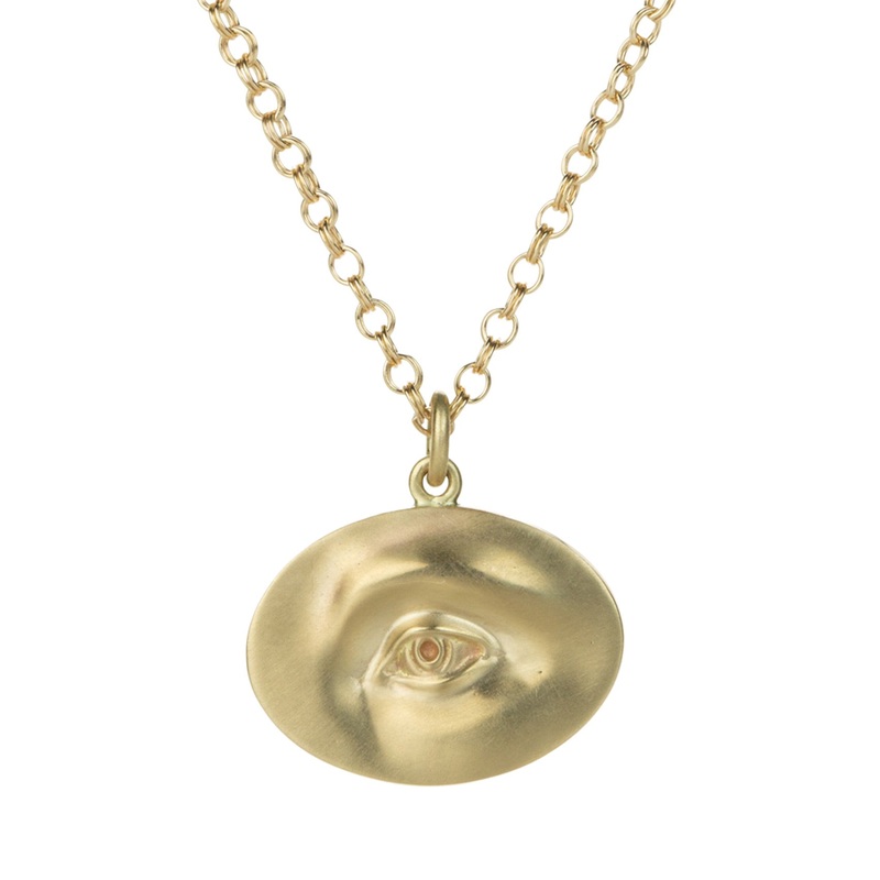 Part of her Love Token series, this 18k yellow gold necklace from Gabriella Kiss celebrates our ability to see the best in one another, whether it be in the physical or spiritual sense. Featuring a large detailed lover's eye pendant with a soft brushed fin