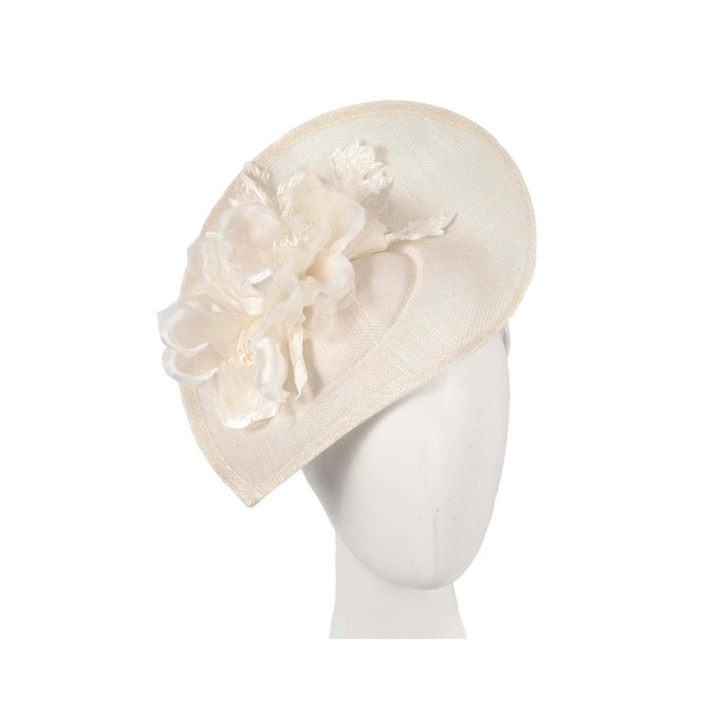 Stylish ivory cream fascinator decorated with large silk flower. Perfect choice for your next racing outfit. Made in Australia Unique design by Max Alexander Real sinamay Headband for easy wear