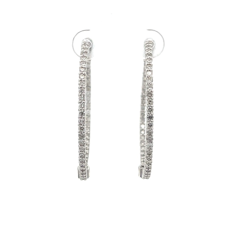 14 karat white gold Large Hoop Earrings containing 2.06 carat total of diamonds.