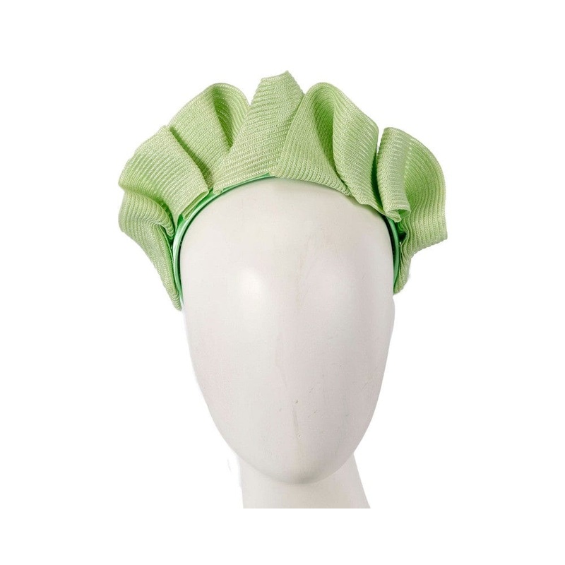 Lime crown fascinator from latest Max Alexander racing collection. Waves of PU leather on the comfortable headband. Designed in Australia Renown Max Alexander brand Comfortable headband