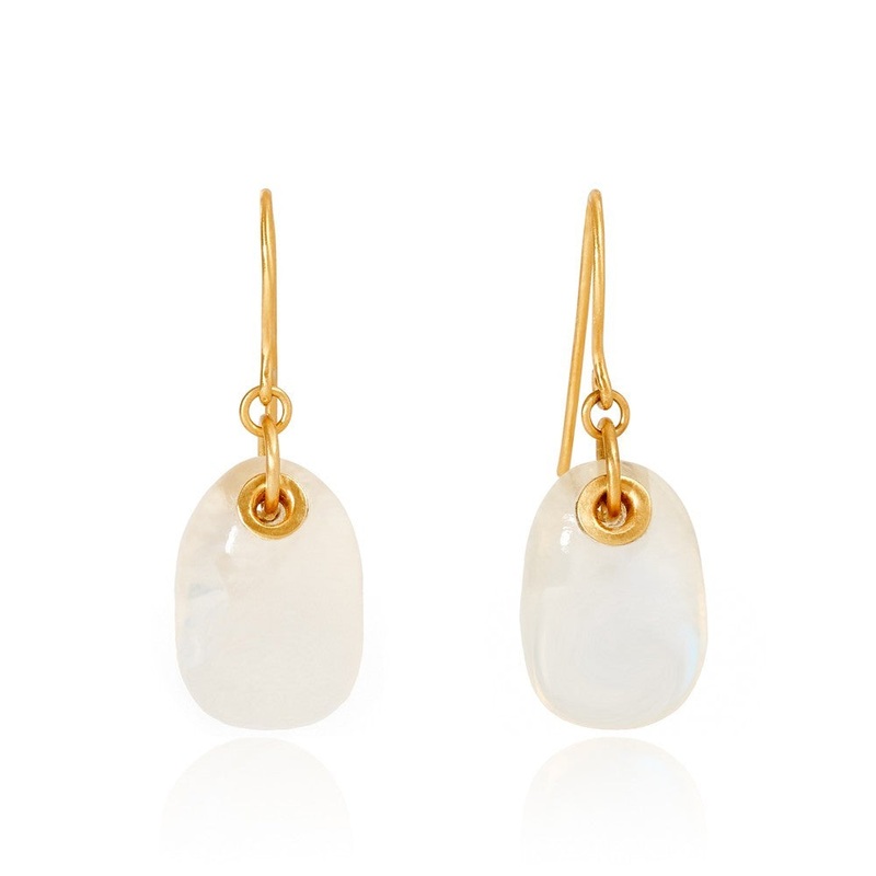The Large Moon Egg Earrings are made with 18k yellow gold and feature large moonstones.