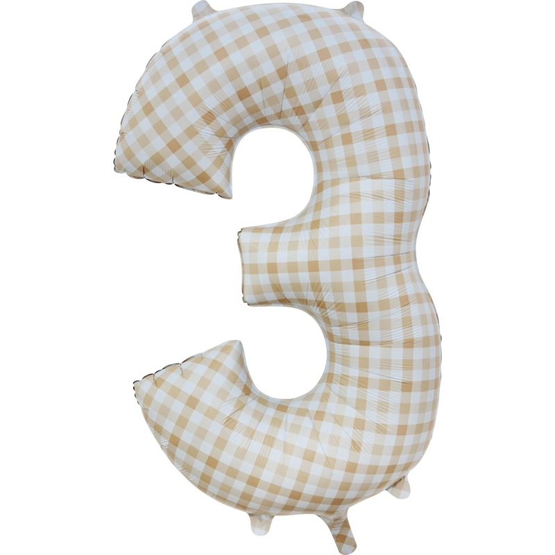 Large Number 3 Gingham Foil Balloon 53cm w x 87cm h