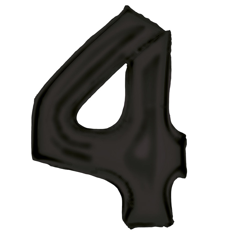 YUU7745289148Large Number 4 Silk Lustre Black Foil Balloon 66cm w x 93cm h