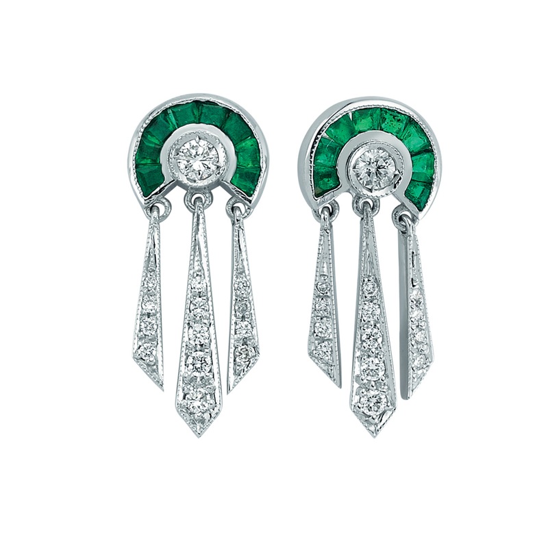 This pair of Laure Earringsare a stunning set of drop earrings set in 18 karat white gold, featuring emerald and pave circles with pave diamond drops. Designed by Istanbul fine jewellery designer Melis Goral.Part of The Paris Collection, inspired by the Th