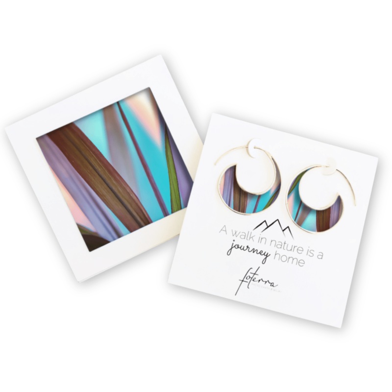 Leaves of Grass Earrings:If you love laying in the grass and gazing up at the sky, the Leaves of Grass collection is perfect for you! Featuring a macro-photograph of blades of grass, these boldly colored pieces will put you back in a day dreaming state of