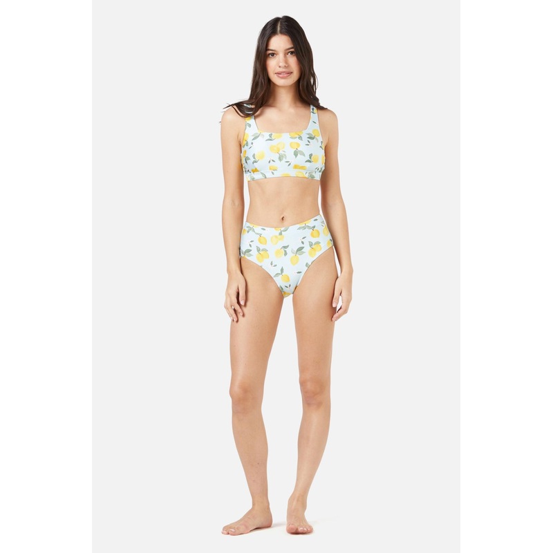 Blue bikini bottom, high waisted swim style. Printed with lovely lemons & sweet blossoms. Perfect for beach or poolside days.- high waisted fit- comfy wide waistband- full rear coverage- nylon elastane blend swim fabric with lining- available in blueProduc