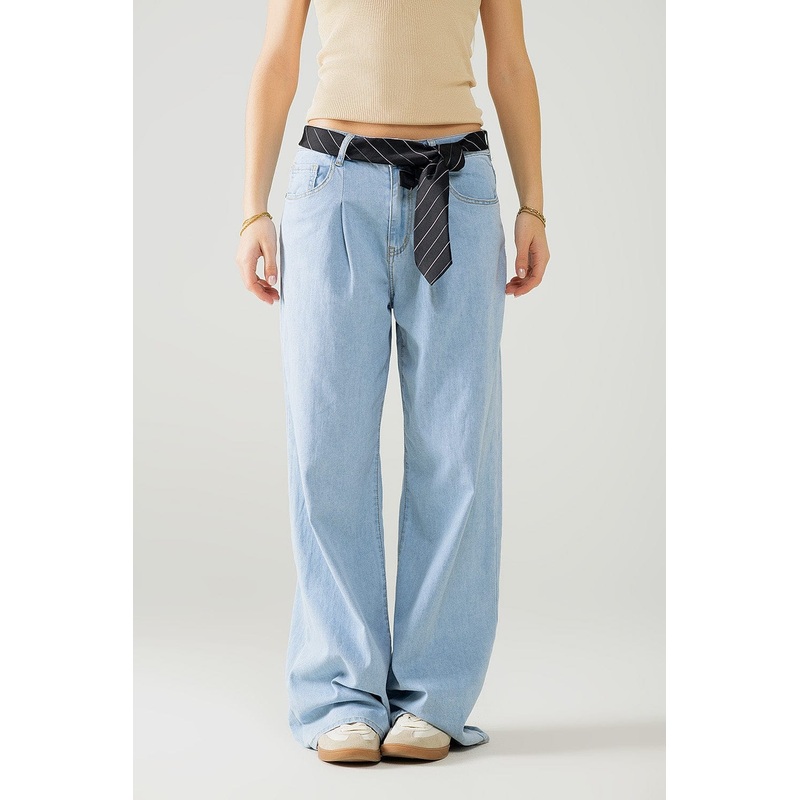 Blending effortless sophistication with everyday comfort, these light blue wide-leg jeans bring a modern twist to classic denim. Designed with a relaxed fit and soft pleats, they offer a refined yet casual aesthetic that flatters the silhouette while allowing for ease of movement. The light blue wash enhances their versatility, making them a perfect go-to piece for both casual and semi-formal ensembles.