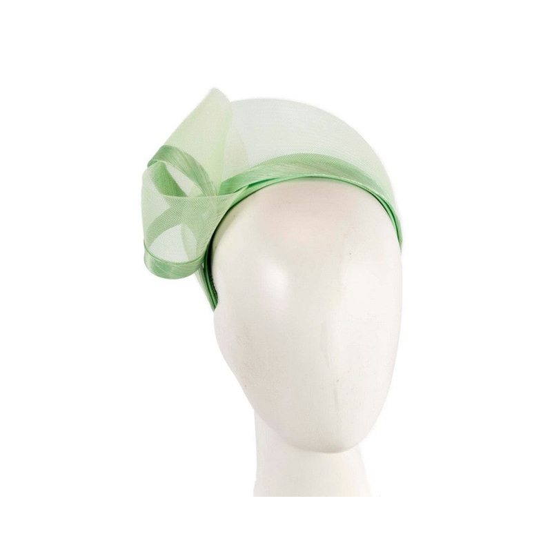Mint green racing fascinator. Hand made in Melbourne by our experienced milliners, this racing headpiece is made from twists of luxurious silk abaca and crinoline and placed on the comfortable headband. Made in Australia Latest fashion accessory Renown Fil