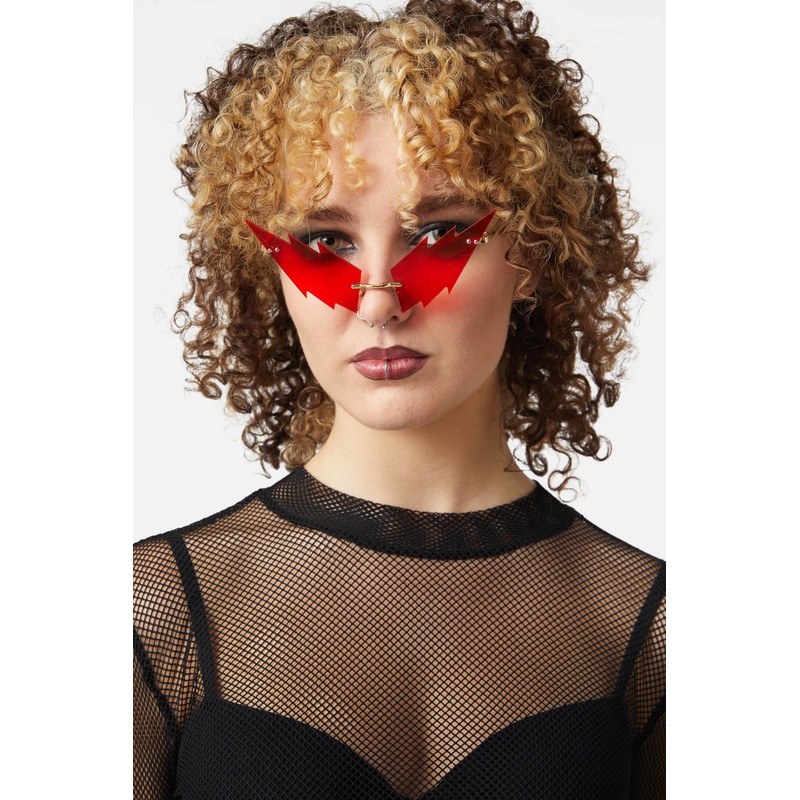 Lightening Glasses- Fun and cool novelty glasses- Lightening shape- Frameless design- Available in red or grey- Gold toned hardware- Fashion eyewear onlyProduct Code: DWFW073