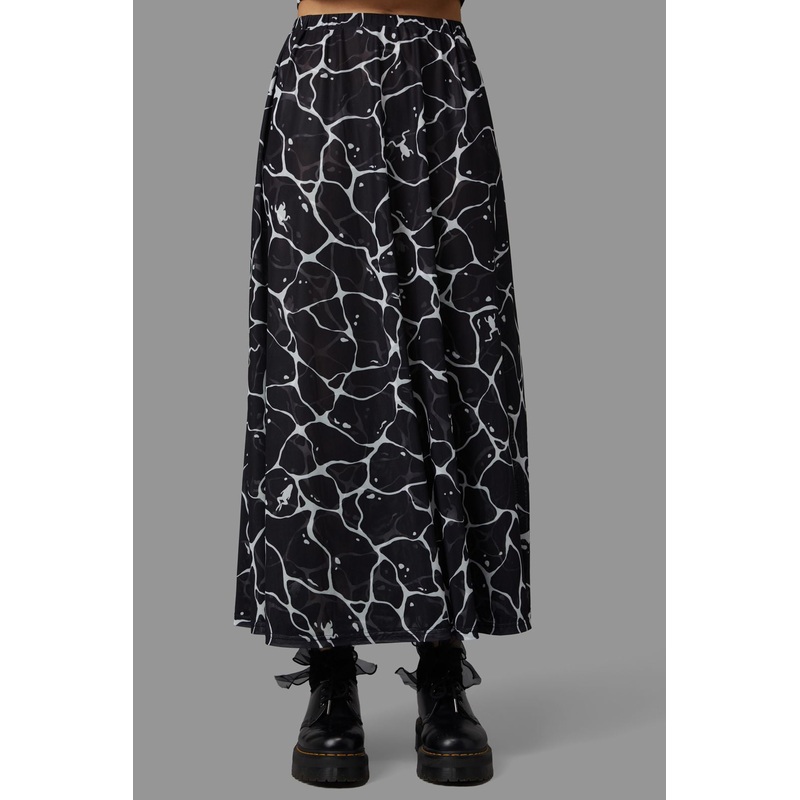 Mesh Skirt- Maxi Length- Relaxed Fit- Elasticated Waistband- Unlined- Sheer- All-Over 'lily Pad' Print- Stretchy Fabric- Made From Polyester Mesh- Available In BlackProduct Code: BGFW211
