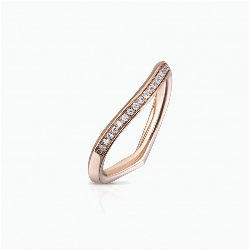The Lily Pad Wedding Band in Rose Gold features 18K Rose Gold set with approximately 0.10ct Round White Diamond pave.The Lily Pad Wedding Band sits perfectly with the Lily Pad Engagement ring.