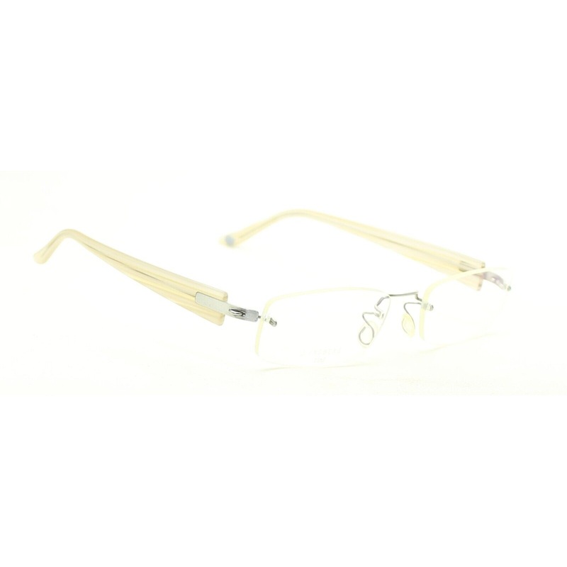 This frame is rimless, polished silver titanium nose bridge and hardware.
