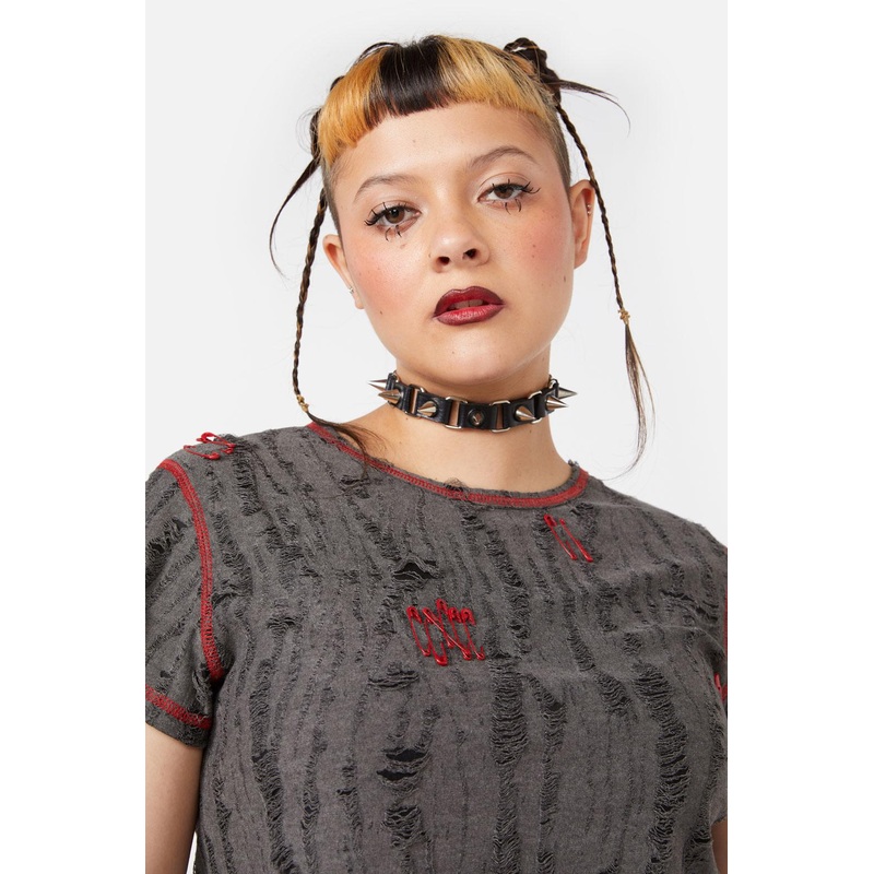 Linked Spike Choker- A cool punk inspired accessory- Black choker- Silver toned links and spikes- Vegan leather- Buckle fastening- Comes in sizes S, M and LProduct Code: BWFY086