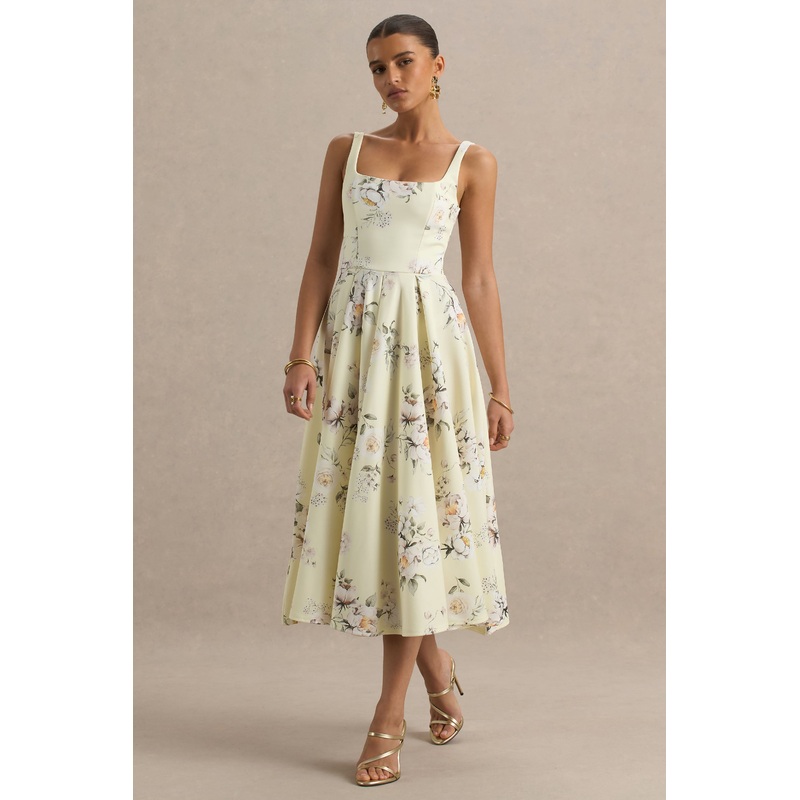 Lissa | Lemon Floral Bouquet Print Square-Neck Midi Dress