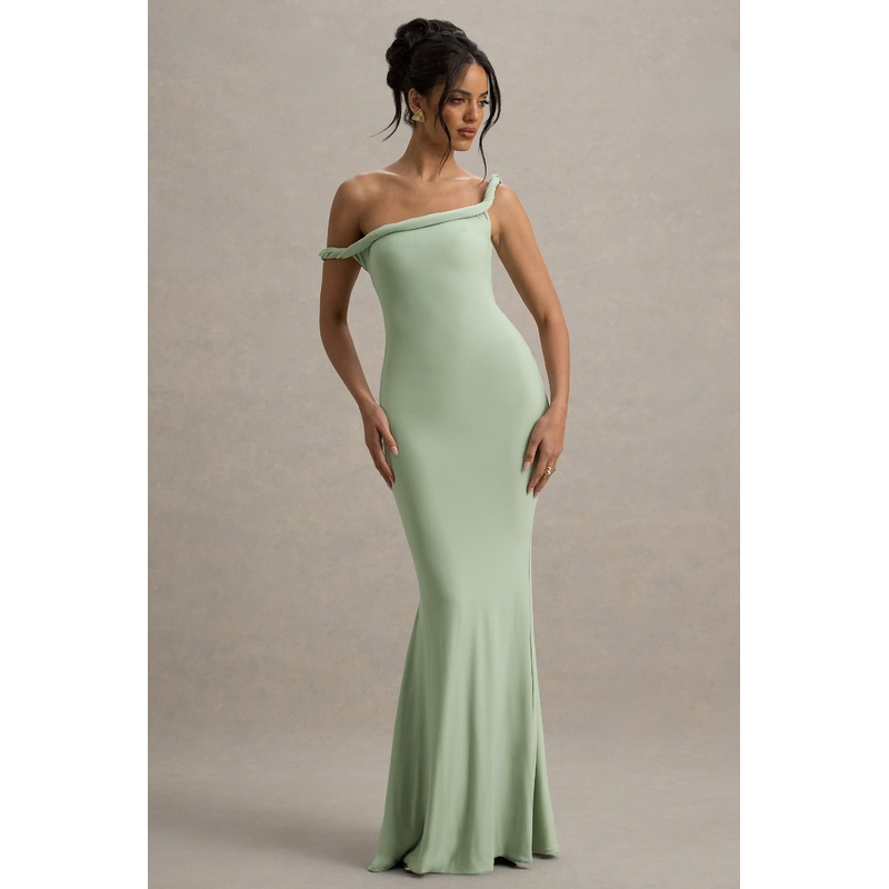 Lita | Light Green Twisted Asymmetric Maxi Dress