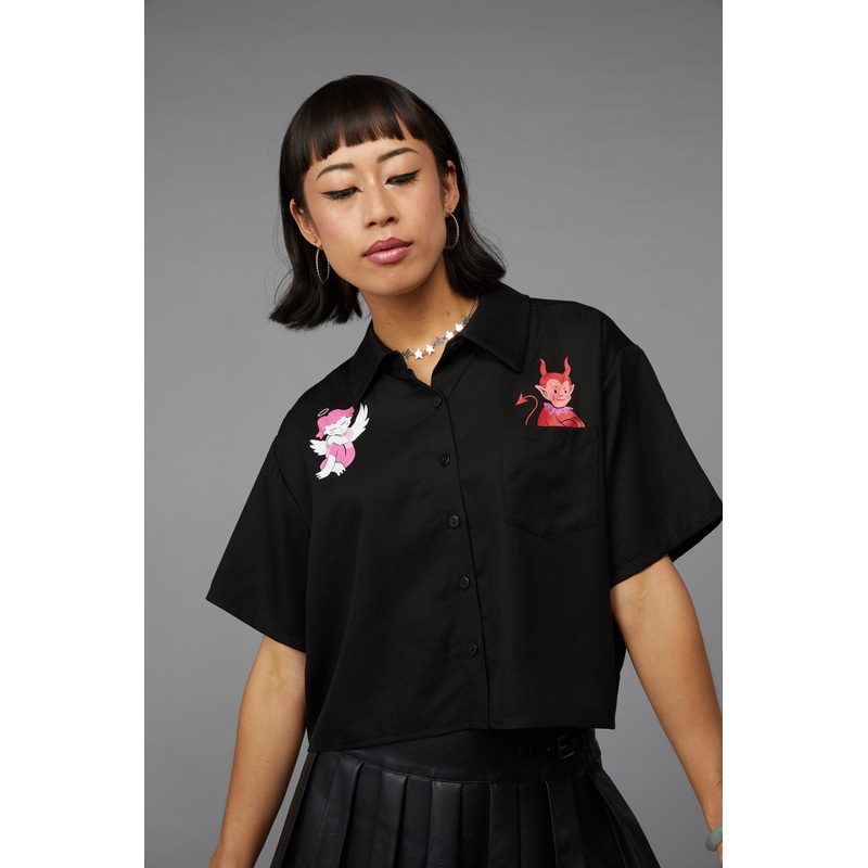 Graphic Shirt- Boxy Shape- Short Sleeves- Collar At Neckline- Button Down Placket At Front- Pocket On Side Bust- 'Little Friends' Placements Prints On Front And Back- Made From Soft Woven Viscose- Available In CreamProduct Code: BGFV020101