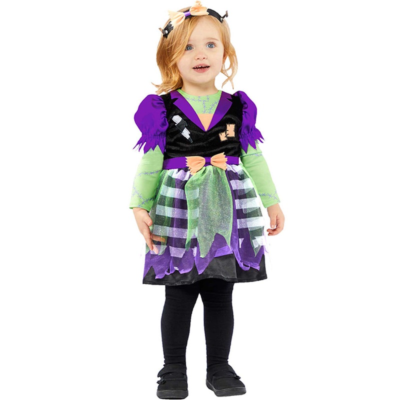 Item Includes:Headband.Dress.Fit and Sizing:See size chart image for details.Fabrics and Care:100% Polyester.Hand wash, hang dry.Please note: Tights and shoes are not included.I'm a monster!Be a cute and cuddly monster this Halloween in this Little Miss Fr