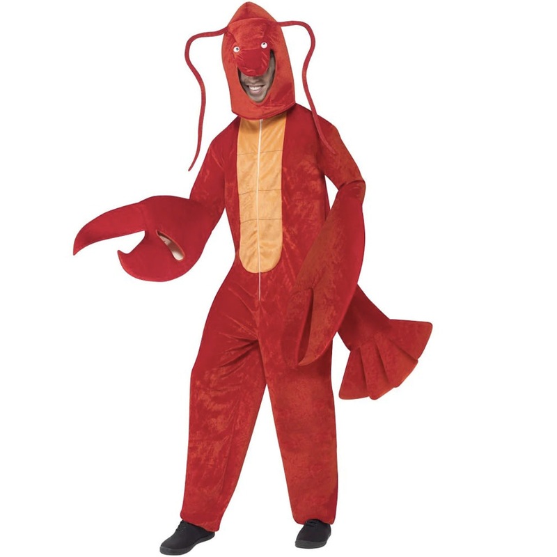 The Lobster Mens Costume is shore to be a crowd-pleaser. Included is a full-length lobster bodysuit in fire truck red with a neck-to-waist underbelly strip in light salmon orange. The headpiece, worn as a hood, features a face opening with eyes above. Long, red lobster antennae are attached to the sides of the head and hang down across the shoulders of the costume. Red long sleeves extend into attached plush lobster claws that cover the wearer’s hands. The lobster claws have a hand opening on the inside for convenience. The bottom half of the bodysuit features ankle-length red pants and a red lobster tail attached to the waist. This is the perfect dress-up for letter L, ocean, and sea creature-themed parties. Bonus points if you have matching fire-truck-red shoes!