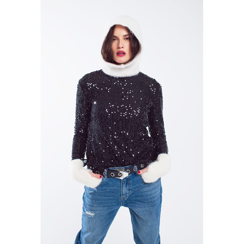 Introducing our Long Sleeve Glitter Top in Black, a dazzling and versatile party piece that's sure to make you shine at festive gatherings, especially during Christmas and New Year's Eve. This black glitter top is designed to add a touch of glamour and sty