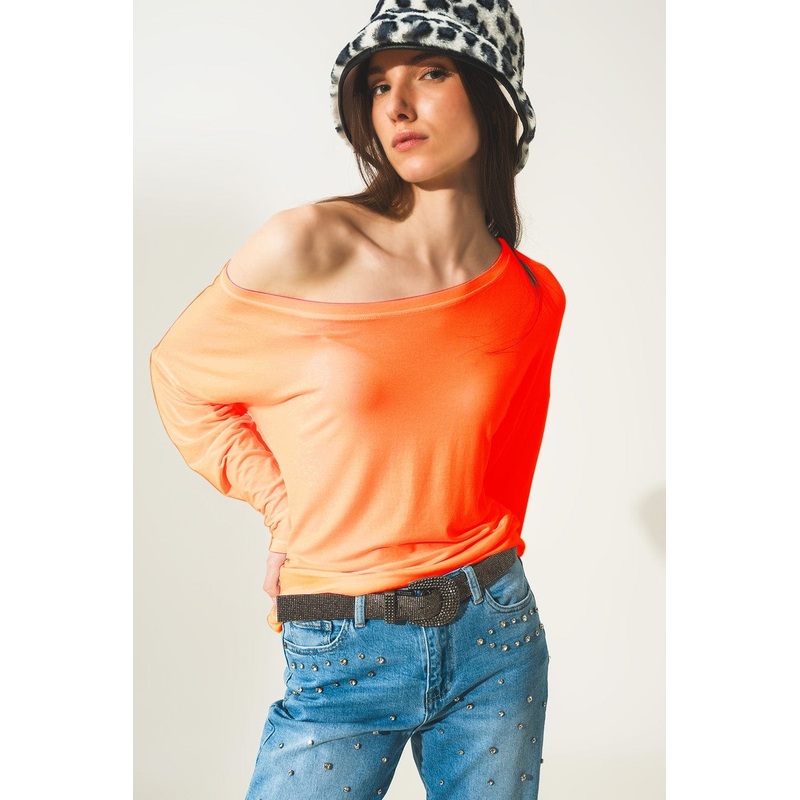 Featuring a vibrant orange hue, this long-sleeve t-shirt adds a pop of color to any outfit. The simple yet chic design makes it a versatile addition to your wardrobe, whether you’re dressing it up or down. The classic boat neckline and long sleeves offer a flattering and comfortable fit, while the relaxed silhouette allows for ease of movement.