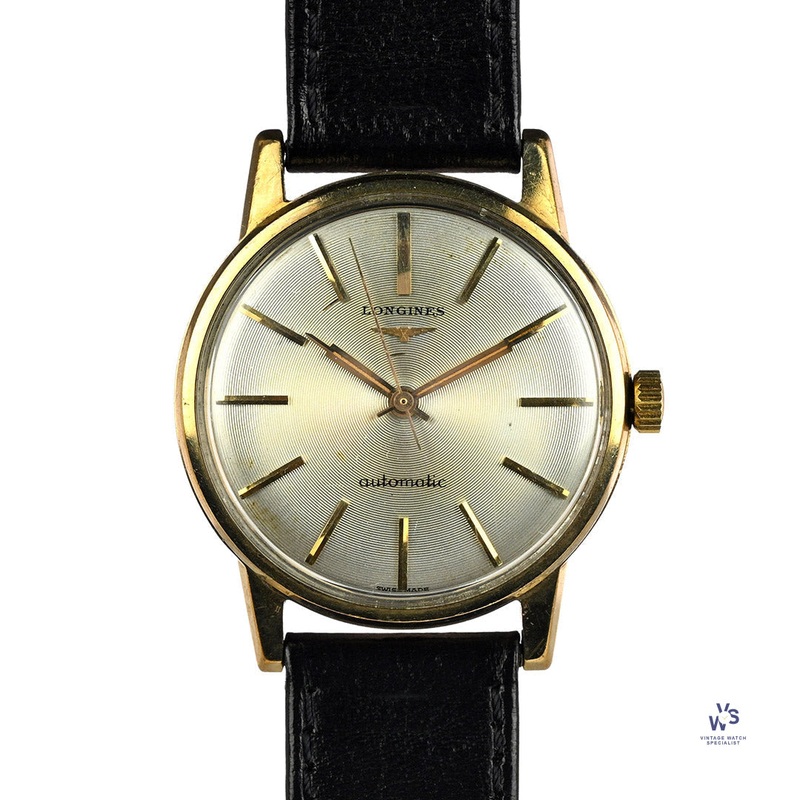 A beautiful Longines time-only watch crafted from 9k gold with a stunning concentrical textured dial in silver. The dial is very chic with a simple yet tasteful design comprising extended gold baton hour plots and corresponding gold hands, including a central seconds needle hand. The dial is completed by an applied Longines emblem and encapsulated underneath shatterproof Plexiglas. TheJean Humbert & Co. case is well made and has remained in nice shape with minimal signs of wear.