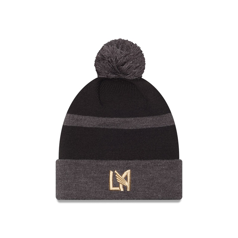 The Los Angeles FC 2025 MLS Kickoff Pom Knit features an embroidered Los Angeles FC logo at the front cuff with a matching MLS Shield at the rear and a one-time removable pom.