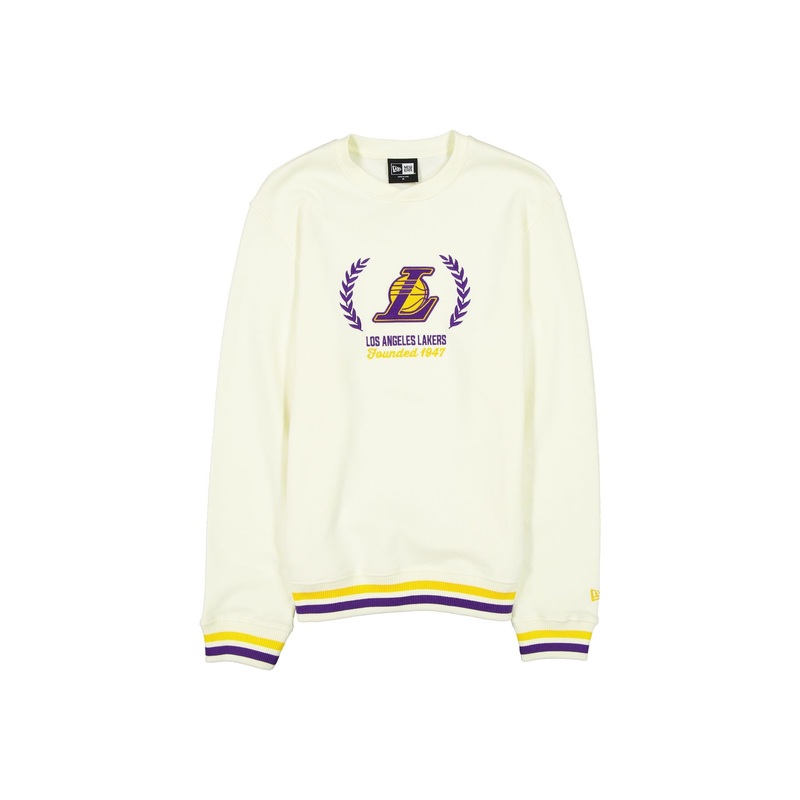 The Los Angeles Lakers Throwback Chrome White Crewneck features a twill applique Lakers logo and an embroidered wordmark at the front with a New Era jock tag at the left hip.Fabric: 60% Cotton, 40% Polyester
