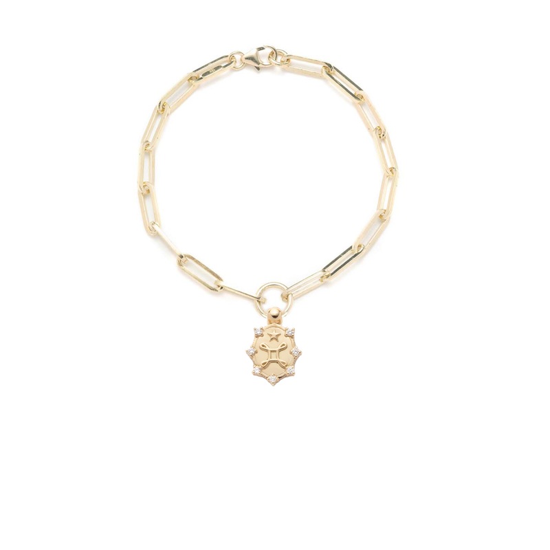 Handcrafted in 18-karat Yellow Gold, this Classic Fob Clip Chain bracelet symbolizes Love. A True Love Knot, also known as Bowen’s Knot, is a heraldic knot representing the connectivity of true love. The star represents energy & divine guidance. The 7 is a tribute to the classic types of love as defined thousands of years ago: Eros: romantic love, Philia: friendship, Agape: universal love, Storge: the love between parent and child, Ludus: playful love, Pragma: love founded on duty & reason, Philautia: self-love.